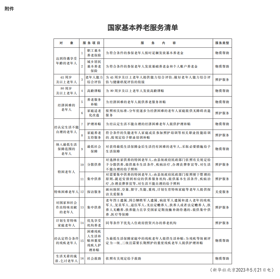 附件:国家基本养老服务清单